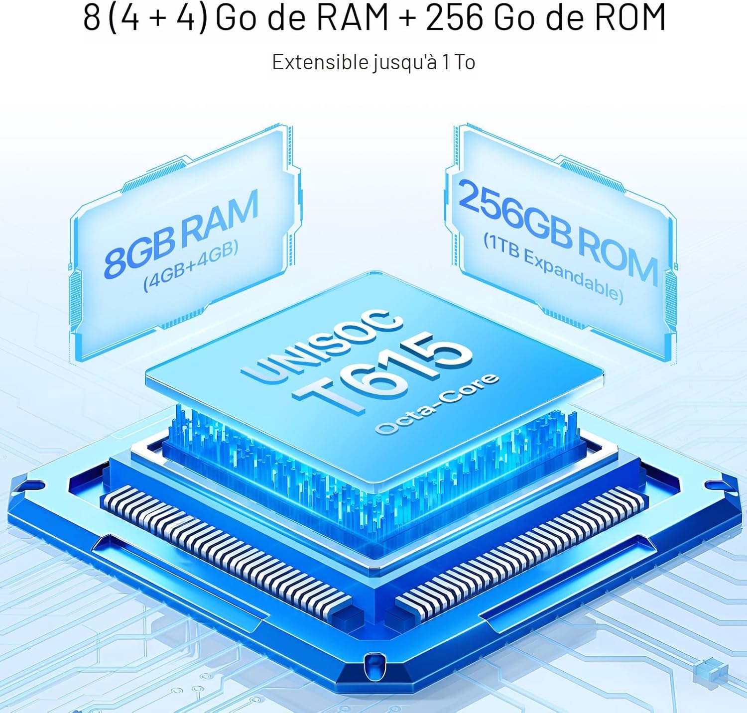Le téléphone portable déverrouillé dispose d'une configuration de 8 Go de RAM et de 256 Go de ROM, avec prise en charge d'une extension de carte TF jusqu'à 1 To. Il offre également deux emplacements SIM qui peuvent accueillir deux cartes SIM Nano ou une combinaison d'une carte Nano SIM et d'une carte TF