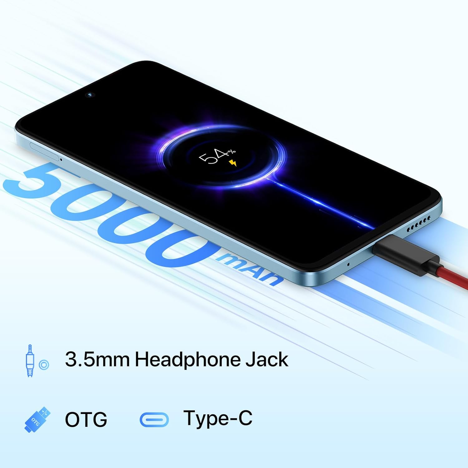 Le téléphone Android UMIDIGI Note 100A débloqué possède une batterie longue durée de 5000 mAh, prenant en charge la charge rapide PD de 20 W, ce qui réduit considérablement le temps de charge. Il est également livré avec un chargeur standard de 10 W
