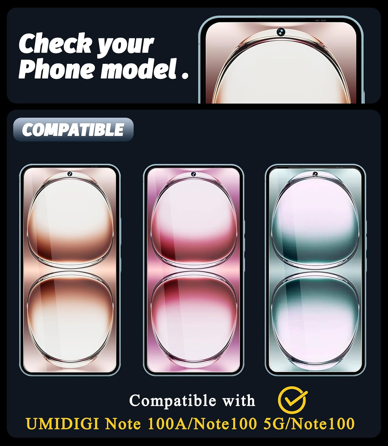 Compatibilité : protection d'écran en verre trempé spécialement conçue pour UMIDIGI Note 100A / UMIDIGI Note 100 5G / UMIDIGI Note 100. Découpes précises pour l'appareil photo avant, n'affecte pas la fonction du selfie